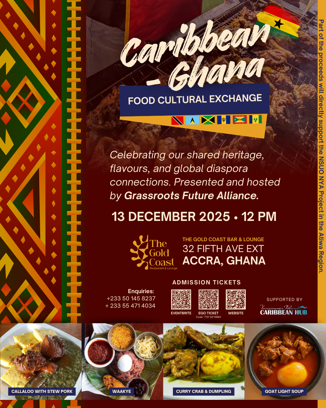 A Celebration of Culture & Cuisine: Immerse yourself in the rich tapestry of Caribbean and Ghanaian traditions, united through food, music, and community.